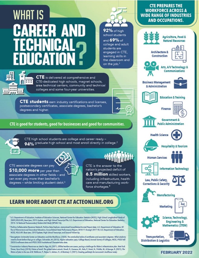 A: The Association for Career and Technical Education states, “Today’s cutting-edge, rigorous and relevant career and technical education prepares youth and adults for a wide range of high-wage, high-skill, high-demand careers.”